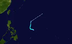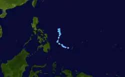 On February 3, a tropical depression developed near Palau.[17] The PAGASA would later name it as "Bising" as the depression was present at the Philippine Area of Responsibility.[18][19] The storm would meander around the Philippine Sea, until the depression started to weaken when its LLCC became exposed, while moving north-northeast.[20][21] The agency would not notice its weakening until the next day, when they issued their last advisory.[22]
