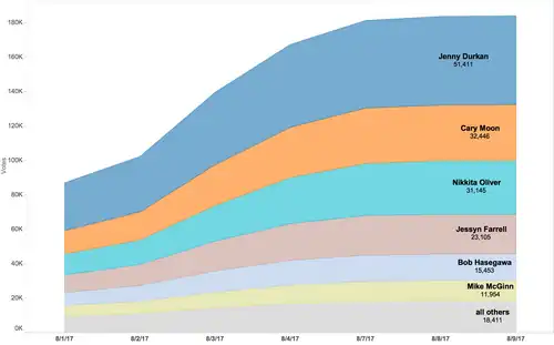 - ^ a b "Election Results, August 2017 (last updated 8:02 PM)", King County Elections, King County, Washington, August 1, 2017, archived from the original on August 3, 2017