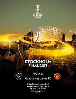 The 2017 UEFA Europa League final was the final match of the 2016–17 UEFA Europa League, the 46th season of Europe's secondary club football tournament organised by UEFA, and the 8th season since it was renamed from the UEFA Cup to the UEFA Europa League. It was played on 24 May 2017 at the Friends Arena in Solna, Stockholm, Sweden,[5] between Dutch side Ajax and English side Manchester United. Manchester United won the match 2–0 to secure their first title in this competition.[6] With this victory, they joined Juventus, fellow finalists Ajax, Bayern Munich and Chelsea as the only clubs to won all three major European trophies at the time (European Champion Clubs' Cup/UEFA Champions League, UEFA Cup/Europa League, and the now-defunct Cup Winners' Cup);[7][8][9] while, with this defeat, Ajax became the fifth club – after Hamburger SV, Fiorentina, Arsenal and Liverpool – to have lost a final in all these competitions.[10]