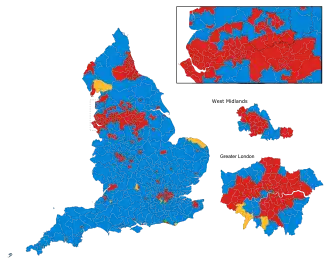 All seats in the region went to the two main parties: Labour increasing their dominance, the Conservatives falling back slightly, and the Liberal Democrats being swept away. UKIP had polled strongly in 2015 but this year declined to insignificance. The Green Party continued to have negligible presence.