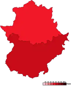 ![]() Constituency results map for the Assembly of Extremadura | |||||||||||||||||||||||||||||||||||||||||||||||||||||||||||||||||||||||||||||||||||||||||
