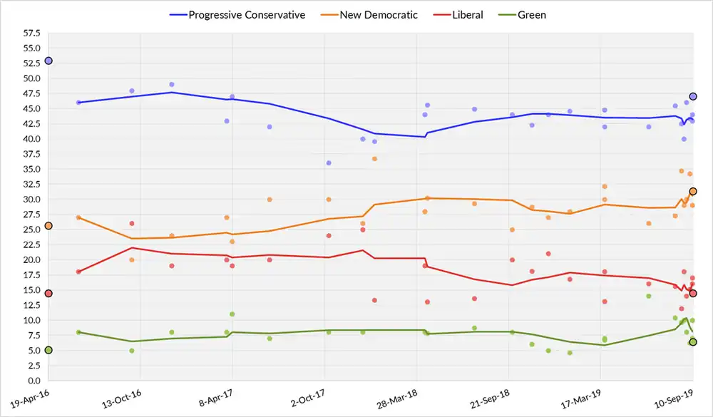 - ^ "Progressive Conservatives Remain Ahead of NDP in Manitoba". September 10, 2019.