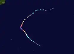 | Peak intensity | 195 km/h (120 mph) (10-min); 920 hPa (mbar) |