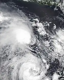 On 13 January, a tropical low developed approximately 200 kilometres (120 mi) east-northeast of the Cocos Islands, which the Bureau of Meteorology (BOM) designated as 07U. Afterward, the tropical low began moving southwestward, while gradually organizing.[122] On 16 January, gale-force winds started to develop and by 12:00 UTC on the same day, the low had intensified further into Tropical Cyclone Joshua, which became the second named storm both in the 2020–21 Australian region cyclone season and worldwide. Joshua continued to move southwestwards, before moving into the South-West Indian Ocean on 17 January.[123]