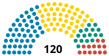 The 120 seats in the Supreme Council are elected by proportional representation in a single nationwide constituency. To win seats, parties must pass a national electoral threshold of 7% of the votes cast,[4] and receive at least 0.7% of the vote in each of the seven regions.[5] No one party is allowed to hold more than 65 seats.[6] Party lists are required to have at least 30% of the candidates from each gender, and every fourth candidate had to be of a different gender. Each list is also required to have at least 15% of the candidates being from ethnic minorities and 15% of under 35 years old, as well as at least two candidates with disabilities.[6][7]
