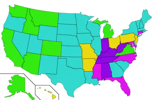 In addition to standards required by federal law, many states have also adopted other criteria, including compactness, contiguity, and the preservation of political subdivisions (such as cities or counties) or communities of interest.[17] Some states, including Arizona, Colorado, New York and Washington require the drawing of competitive districts.[17]
