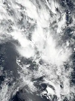 On 5 January, the FMS began monitoring a tropical disturbance near Fiji, designating the system as 03F.[21] Later that day, the Joint Typhoon Warning Center (JTWC) began monitoring 03F, though its development was inhibited due to wind shear.[22] The system's chances of developing increased,[23] and on 8 January, the JTWC issued a Tropical Cyclone Formation Alert for 03F.[24] On the same day at 21:00 UTC, the JTWC upgraded 03F to a tropical depression, assigning it the designation 05P.[25] 03F briefly weakened on the next day; however, it reorganized, with a satellite scatterometer pass showing winds of 35 knots (65 km/h; 40 mph) prompting the JTWC to upgrade it to a tropical storm.[26] On 10 January, the FMS upgraded 03F to a Category 1 cyclone on the Australian scale and assigned it the name Cody. The FMS estimated peak 10-minute sustained winds of 130 km/h (80 mph), with the JTWC estimating peak 1-minute sustained winds of 95 km/h (60 mph). The JTWC assessed that Cody transitioned into a subtropical cyclone on 11 January,[27] with the FMS issuing its last advisory for Cody late on 12 January.[28]