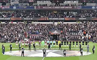 ![]() West Ham line up at the London Stadium before their Europa League semi-final game against Eintracht Frankfurt | ||||