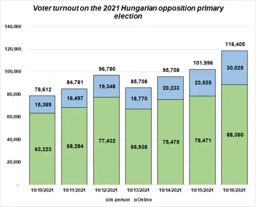 - ^ "Szombaton is rekordmennyiségű ember ment el szavazni az előválasztáson". telex (in Hungarian). 2021-09-26. Retrieved 2021-09-26.