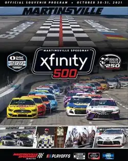The 2021 Xfinity 500 was a NASCAR Cup Series race held on October 31, 2021, at Martinsville Speedway in Ridgeway, Virginia. Contested over 501 laps—extended from 500 laps due to an overtime finish, on the .526 mile (.847 km) short track, it was the 35th race of the 2021 NASCAR Cup Series season, the ninth race of the Playoffs, and final race of the Round of 8. Alex Bowman moved Denny Hamlin during the closing laps to earn his fourth win in 2021, as well as his sixth overall.