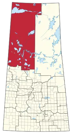 A map of Saskatchewan's provincial ridings, showing Athabasca highlighted in red.