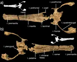 - ^ Bestwick, J.; Godoy, P. L.; Maidment, S. C. R.; Ezcurra, M. D.; Wroe, M.; Raven, T. J.; Bonsor, J. A.; Butler, R. J. (2022). "Relative skull size evolution in Mesozoic archosauromorphs: potential drivers and morphological uniqueness of erythrosuchid archosauriforms". Palaeontology. 65 (3): e12599. Bibcode:2022Palgy..6512599B. doi:10.1111/pala.12599. S2CID 249112361.