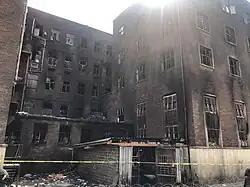 President Cyril Ramaphosa visited the site of the tragedy on 31 August, calling it a "wake-up call".[16] Gauteng Premier Panyaza Lesufi announced an inquiry into the fire.[19] While government officials blamed the crisis on NGOs, who prevented the previous attempts to evict occupiers from similar properties,[20][21][22] NGOs and inner city property owners argued that it was the duty of the City of Johannesburg to maintain buildings, provide services and enforce safety regulations.[23] South Africa's courts have consistently ruled that evictions cannot proceed unless alternative housing is provided under the provisions of the 1998 Prevention of Illegal Eviction Act.[24][25] Following the fire, the City attempted to disconnect illegal electricity connections from similar hijacked buildings in the city, but was met with strong resistance from residents.[26]
