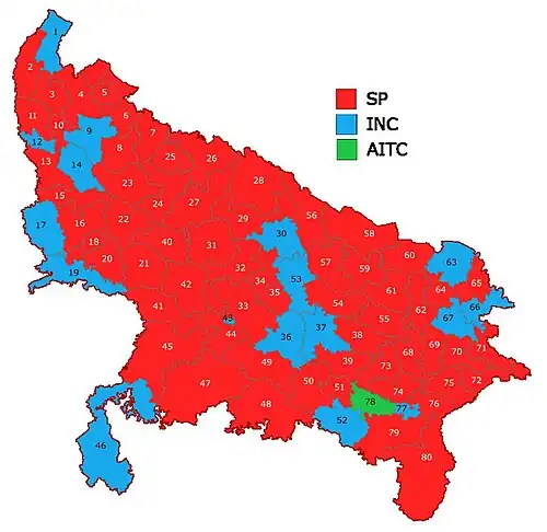 Partywise result map of the 2024 general election in Uttar Pradesh Alliance wise result map of the 2024 general election in Uttar Pradesh