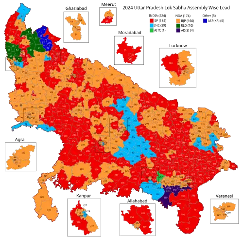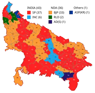 All opinion polls and exit polls forecasted a landslide win for the BJP, but the INDIA alliance of SP and INC instead won 43 seats, more than the half parliamentary seat in the state.