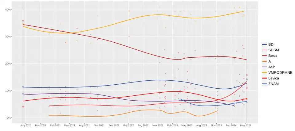| SDSM | LDP/DOM | Besa | LD | A | ASh[a] | BDI | PDSh | VMRO-DPMNE | ||||||||