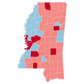 | Oktibbeha | 8,901 | 49.13% | 8,851 | 48.86% | 364 | 2.01% | 50 | 0.27% | 18,116 |