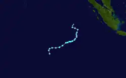 | Peak intensity | 55 km/h (35 mph) (10-min); 1005 hPa (mbar) |