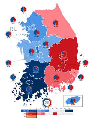 Lee, who narrowly lost the 2022 presidential election to Yoon, ran again. Voter turnout was 79.38%, the highest since the 1997 presidential election.[3][4] Campaign issues included the 2024 martial law crisis, infighting within the PPP, the economy, housing costs, political polarization, Trump tariffs, gender equality, the cost-of-living crisis, and the aging crisis.