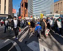 On January 25, a demonstration began at Water Tower Place in downtown Chicago, featuring multiple social justice speakers before participants marched to Trump Tower. The demonstration was originally scheduled for President Trump's second inauguration on January 20, but was postponed due to severe weather conditions. Over 60 advocacy organizations were involved in the march.[5]