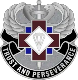 The 274th Forward Surgical Team (Airborne)—part of the 274th Forward Resuscitative and Surgical Detachment (Airborne)[2]—is an airborne forward surgical team of the United States Army providing Level II care[3] far forward on the battlefield. It was first constituted in 1944 and served in Europe during World War II. More recently it has been involved in relief operations following natural disasters and has undertaken several recent deployments to Iraq and Afghanistan. The 274th Forward Surgical Team was part of both the initial entry forces of Operation Enduring Freedom in 2001[4] and Operation Iraqi Freedom in 2003.[5] Currently the unit falls under the command of the 16th Hospital Center[6] and is based at Fort Bragg, North Carolina.