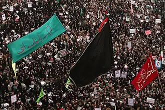In protest against the results of the 2009 Iranian presidential election, demonstrators took to the streets on 27 December 2009,[7] coinciding with Ashura, a Shia holy day. According to Ibrahim Moussawi, associate professor of Lebanese University and head of Hizbullah's media relations, the incident damaged "public relations" of the Iranian Green Movement with Iranian citizenry more than all events as the acts of the protesters on that day including "applauding, whistling, and engaging in other cheerful displays," was "widely" seen as violation of a "red line" and targeting Husayn ibn Ali and Ashura commemoration itself.[1] Lolagar mosque in Tehran was set into fire by the "rioters", according to the State TV of Iran leading to death of "few" people in mosque.[8] Various society groups including "marej-'e taqlid, the society of Iranian doctors, university student groups, the Iranian Parliament, Oil Industry Workers, the Iranian Women's Culture and Education Society, the Society of Iranian Teachers, the Iranian Professors Society, provincial governors, municipalities and bazaars" expressed their condemnation and many of them publicly asked for the "prosecution of the opposition leaders".[1]
