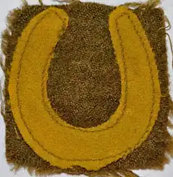 In late 1917 or early 1918 the division sign of a yellow horseshoe was added above the other patches (except for the machine gun companies witch wore it below the battle patch).[15]