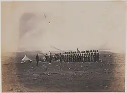 The regiment was sent to the Cape of Good Hope for service in the Fifth Xhosa War in 1818 and then to India in 1822 from where it was deployed to Burma for service in the First Anglo-Burmese War in 1824.[10] It returned to England in May 1836 and proceeded to Ireland in May 1837 before embarking for Zante in the Ionian Sea in September 1840.[10] It went on to Gibraltar in March 1843 and to Jamaica in November 1845 before proceeding to Halifax, Nova Scotia in April 1848.[10] After returning to England in August 1851, it was dispatched to the Crimea for service in the Crimean War in April 1854.[10] It took part in the Battle of the Alma in September 1854, Battle of Inkerman in November 1854 and the siege of Sevastopol in winter 1854.[11] The regiment then embarked for India in August 1857 and saw action at the Capture of Lucknow in March 1858 during Indian Rebellion.[11] It also took part in the expedition against the Black Mountain tribes in 1868 before returning to England in 1871.[2]