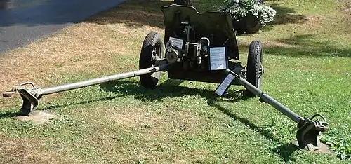 ![]() 45 mm anti-tank gun M1937, displayed in Finnish Tank Museum in Parola. | |