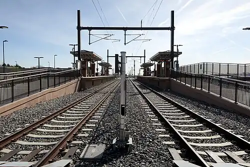 ![]() 60th & Sheridan–Arvada Gold Strike station platforms | |||||||||||