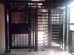 The station's other fare control area toward the north end is un-staffed. A single staircase from each platform goes down to a landing around a now-closed station house. A single full height turnstile provides access to/from the station before another staircase goes down to either southern corners of New Utrecht Avenue and 77th Street.[10]