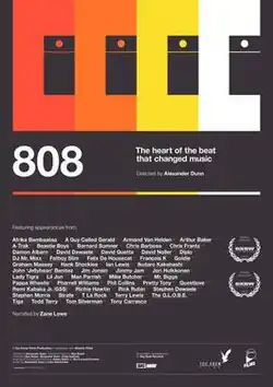 808 is a 2015 American documentary film directed by Alexander Dunn, written by Dunn and Luke Bainbridge, and produced by Alex Noyer, Dunn, Craig Kallman and Arthur Baker. It is narrated by Zane Lowe and documents the history and culture of the Roland TR-808, a drum machine that had a significant effect on hip hop and pop music.