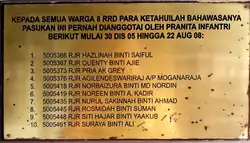- ^ Adam Mohd Isa, Lieutenant (21 August 2020). "Majlis Doa Selamat Serah Terima Tugas Pegawai Memerintah 8 RRD (Para)". Berita Tentera Darat Malaysia (in Malay). Retrieved 10 September 2020.