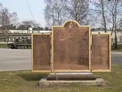 In March 1918, they were transferred to the 9th Cavalry Brigade, 1st Cavalry Division. On 11 March, they came on the British War Establishment i.e. D squadron was absorbed into the others.[22] The Germans began to collapse soon after the allies began their final offensive in August, the 8th fighting at St Quentin, Beaurevoir and Cambrai and the Pursuit to Mons. On 11 November 1918, whilst camped at Maffles, the regiment heard that the Armistice had been signed. The 8th Hussars had 105 soldiers killed and countless wounded throughout the four years of the war.[3] The regiment commissioned a memorial to the fallen, which has been on display, where possible, since its unveiling and has been updated with the names of those who fell in the Second World War and the Korean War and is now on display with the successor regiment, the Queen's Royal Hussars.[23]