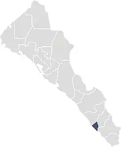 In its final form, the 8th district covered the southern portion of the city of Mazatlán and parts of the municipality of Mazatlán to the south of the city (386 precincts). The city of Mazatlán served as the head town, where results from individual polling stations were gathered together and tallied.[7][5]