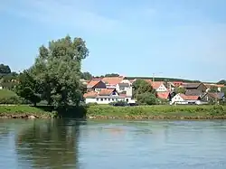 On 2 March 1945, the division took the offensive, moving toward Cologne and crossing the Erft Canal near Glesch. After clearing towns west of the Rhine, it crossed the Ludendorff Bridge at Remagen on the 11th. The 99th Infantry Division was the first complete division to cross the Rhine.[15] They continued to Linz am Rhein and to the Wied River. Crossing on the 23d, it pushed east on the Koln-Frankfurt highway to Giessen. Against light resistance, it crossed the Dill River and pushed on to Krofdorf-Gleiberg, taking Giessen 29 March. The 99th then moved to Schwarzenau, on 3 April, and attacked the southeast sector of the Ruhr Pocket on the 5th. Although the enemy resisted fiercely, the Ruhr pocket collapsed with the fall of Iserlohn, on 16 April.