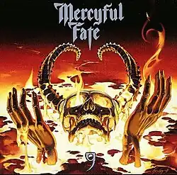 9 is the seventh studio album by Danish heavy metal band Mercyful Fate. 9 was recorded during February and March 1999 and was released on 15 June 1999 through Metal Blade Records.[1] This album continues the heavier sound that was introduced in their previous album Dead Again, and also marks the continuation of the Satanic and occult-based lyrical themes which were prevalent during the band's first incarnation and were reintroduced on 1994’s Time album, as the primary lyrical focus. 9 was Mercyful Fate's last studio album before their twenty-year hiatus from 1999 to 2019.
