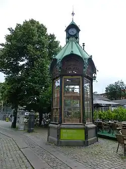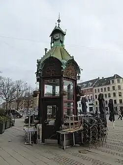 Jensen's telephone kiosks from 1913 are still seen in Nytorv, Kongens Nytorv and Nørre Voldgade but the two latter have been moved a little in connection with a redesign of the surroundings.[6]