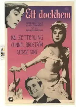 A Doll's House (Swedish: Ett dockhem) is a 1956 Swedish drama film directed by Anders Henrikson and starring Mai Zetterling, Gunnel Broström and George Fant.[1] It was shot at the Sundbyberg Studios of Europa Film in Stockholm. The film's sets were designed by the art director Arne Åkermark. It is based on the 1886 short story of the same title by August Strindberg, which he had written is response to Henrik Ibsen's 1879 play A Doll's House. It was released in the United States in a double bill with Getting Married under the alternative title Of Love and Lust.