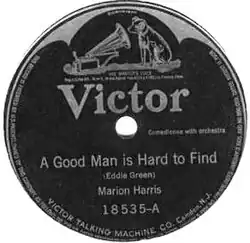 "A Good Man Is Hard to Find" is a song written by African-American songwriter and later actor Eddie Green, and first published in 1917. It was first recorded by Marion Harris in 1919. It is regarded as "one of the classic blues standards from the Roaring Twenties".[1]