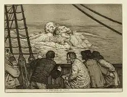 When the sea is quiet again, the three journalists discuss how they can present this astonishing fact to the public. The Dutch journalist, Zuyland, determines to treat the matter in cool scientific fashion, “giving approximate lengths and breadths, and the whole list of the crew whom he had sworn on oath to testify to his facts”.[1]: 137 However, both he and Kipling soon discard their accounts, realising that their story will never be credited as a simple fact. The American journalist, Keller, also realises the futility of presenting such a story to the cynical public, and in the end Kipling tells them he will print the story as a piece of fiction, where it will get a better reception. Truth, he says, “is a naked lady, and if by accident she is drawn up from the bottom of the sea, it behoves a gentleman either to give her a print petticoat or to turn his back and vow that he did not see”.[1]: 141