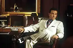 Nero Wolfe features costume design by Christopher Hargadon. Many costumes were found at vintage shops or in Hargadon's personal collection; some clothes were taken apart and reconstructed with new fabrics to capture the color required. For Wolfe, Hargadon said, "I tried to find fabrics that were thick, to sort of even enhance his size more, things that would be structured to hold a big shape."[32] Hargadon estimated that he and his team created at least 1,000 costumes for each season.[33]
