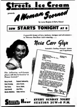 A Woman Scorned is a 1951 Australian radio serial by Betty Roland. It was the inspiration for the television series Return to Eden.[1][2]