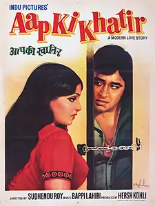 Aap Ki Khatir (transl. For your sake) is a 1977 Bollywood film, produced by Harsh Kohli and directed by Sudhendu Roy. The stars are Vinod Khanna, Rekha, Helen and Om Shivpuri. The film's music is by Bappi Lahiri. The last song in the film "Bombay se Aaya Mera Dost" became a memorable hit. The film is a remake of the American film For Pete's Sake (1974).[1]