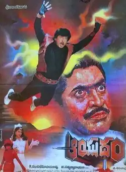 Aayudham (transl. Weapon) is a 1990 Indian Telugu-language action film directed by K. Murali Mohan Rao starring Krishna, Ghattamaneni Ramesh Babu, Radha and Vani Viswanath in the lead roles. The film was produced by G. Satyanarayana for Sri Balaji Films.