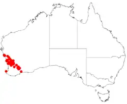 Acacia brumalis grows in a variety of soil types between Regans Ford, Wubin and Hyden but also near Morawa and Northampton, in the Avon Wheatbelt, Coolgardie, Esperance Plains, Geraldton Sandplains, Jarrah Forest, Mallee and Swan Coastal Plain bioregions of south-western Western Australia.[2][5]