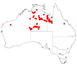 Chippendale's wattle is found from the Sir Frederick Range in the east of Western Australia, through central parts of the Northern Territory to around Cloncurry and Mount Isa in north-western Queensland, where it grows in skeletal rocky lateritic and deep sandy soils.[2][4]