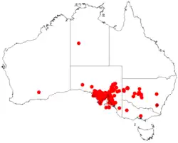 In New South Wales, A.continua is found in central and western parts on rocky ridges and watercourses in mallee and Callitris woodland.[2] In South Australia the species often occurs on the Eyre Peninsula and Flinders and Mount Lofty Ranges, extending south to the coast. It is found growing on hard sandy alkaline or calcareous soils in open woodland, scrubland and Triodia grassland communities.[5]