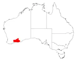This species of wattle grows in a variety of soils in open heath, shrubland and mallee woodland from Lake King to Salmon Gums and Mount Ney in the Coolgardie, Esperance Plains and Mallee bioregions of south-western Western Australia.[3][6]