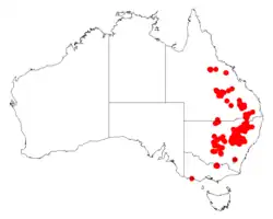 The species occurs on sandhills or rocky outcrops in mallee, woodland or heath in Victoria, New South Wales and Queensland.[3]